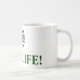 Uma caneca motivacional com o texto, Don't Rush Life, Live Life em texto preto e verde com várias fontes. Para homens e mulheres se lembrarem de retardar e aproveitar a vida. Slogan original e design © 2019 TamiraZDesines. Todos os Direitos Reservados. Visite minha loja para ver mais itens originais: www.zazzle.com/tamirazdesigns