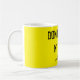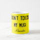As características deste design o provérbio, "não tocam em minha caneca! ", junto com um nome customizável do proprietário.
