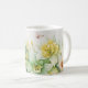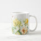 Esta clássica caneca de café branca é mostrada com uma linda estampa de flor de narciso.