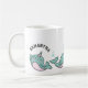 Caneca com uma ilustração narwhal bonito. Este design do divertimento tem narwhals cor-de-rosa e azuis felizes. O clique personaliza para adicionar um nome.