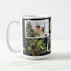 Linda colagem fotográfica Caneca de Natal com sagrada, bagas, pínus cones, galhos, flocos de neve e neve caindo. Personalize facilmente esta caneca de Natal botânica com suas fotos.