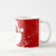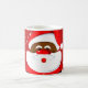 Um design de caneca de Natal afro-americano para Papai Noel, bonito e personalizado, que apresenta um lindo e branco Papai Noel negro e flocos de neve em fundo vermelho.