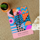 Pinks coloridos e azuis design de Natal geométrico moderno. Com uma estrela dourada! A mensagem é facilmente personalizada.