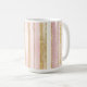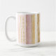 Se você está se perguntando que combinações de cores escolher para sua decoração de Natal e presentes este ano, eu criei coleções de padrões coordenadores para tornar a vida um pouco mais fácil. Este design de caneca de café apresenta um design de faixa vertical moderno, com um efeito de brilho e resmungão, mostrado aqui em uma paleta cor rosa e dourada. "Fa La La La La" vertical em ouro adiciona um sotaque divertido. Procure ID1009 para ver outros produtos e padrões neste esquema de cores.