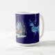 Uma Caneca De Natal Escandinava Azul Com Papais noeis, Uma Casa E Design De Rêrenas No Estilo De Arte Folclórica