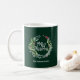 coroa aquática de inverno coroa verde coroa com texto de script de pincel vermelho. Os detalhes do texto podem ser personalizados para cor, fonte e posicionamento.