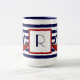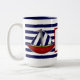 Esta caneca de café é elegante e elegante com veleiros em um marinho e em um fundo listrado branco. Monograma o centro com sua inicial.