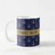 Esta caneca náutica é perfeita para o Java da manhã da Primeira Mates enquanto veleja em mar aberto. O fundo azul do marinho é tão chique com o padrão de repetição da âncora dourada falsa. Adicione "Capitão" e esta caneca está acima da cúpula.