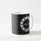 Essa caneca sofisticada apresenta faixas modernas, elegantes, pretas e cinzas e texto fácil de personalizar cercado por um veículo prateado.