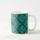 Uma caneca monográfica com um nó celta azul-esverdeado repetia design de diamante contra fundo preto. Personalize-o com a sua inicial!