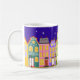 A Cidade Noturna Andando De Gato. Uma bela paisagem urbana noturna com ricos, janelas brilhantes, luzes de rua e um gato ambulante. Negrito, colorido, notável.