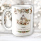 Cacau quente branco e creme ou chocolate Natal Grande Mug de café no estilo clássico, mas moderno, de fazenda adornada com pinheiro, flores brancas de Natal, lanterna e um pássaro bonito. Personalize facilmente o texto - Kate Eden Art