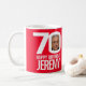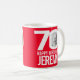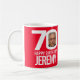 70 vermelho divertido e branco foto personalizada marco de aniversário. Personalize esta caneca de aniversário com duas de suas próprias fotografias no meio do número 0. Excelente para adicionar diversão a um marco de 70 anos. Outros itens e cores correspondentes estão disponíveis. Design exclusivo por Sarah Trett para www.mylittleeden.com