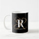 Esta elegante caneca na moda personalizada de monograma apresenta um monograma inicial de script dourado com uma inicial branca em negrito sobreposta, e o nome abaixo, sobre um fundo preto. Esta caneca monograma faz um presente de excelente para todas as ocasiões.