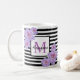 Aproveite seu café de chá com essa flor rosa de pénia em um fundo listrado preto personalizado com sua inicial e seu nome. Você também pode deixar o texto para que seu vazio de nome tenha apenas o inicial. Moderno, clássico e chique. Envie-me um e-mail se quiser personalizar o produto ainda mais ou se quiser transferir para outro produto. Foto tirada no meu jardim. designsbykatz@gmail.com