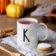Monograma Nome Café White Mug criado pelo tamanho. Mídia minimalista mas na moda, caneca branca personalizada com monograma preto inicial e nome através da letra. Um presente perfeito ou acessório pessoal que é fácil de personalizar (basta clicar no botão 'PERSONALIZAR').