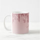 Blush Pink - Rose Gold Moderno Glitter Ombré Monograma com Nome e Inicial - Caneca de Café. A caneca é um presente perfeito para alguém que ama rose gold.