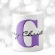 Feliz Natal em uma elegante escrita negra, uma grande inicial em fevereiro, um ametísta roxo médio de pedra de berço, e nomeie em uma simples fonte moderna esta ousada caneca de café clássica de 11oz. Grande capacidade para bebidas quentes ou frias. Altere facilmente o texto inicial e o nome para torná-lo seu usando o Modelo fornecido. . Ideal para café de manhã de Natal da família ou para celebrar durante as férias de inverno. Também disponível em 15oz e muitos outros estilos de caneca. Consulte "Sobre este produto" para obter mais informações. Preços especiais.