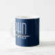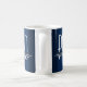 Uma caneca de café PhD com esquema de cor azul e branca. Simplesmente personalize o nome, adicione esta caneca ao seu carrinho e aproveite a próxima xícara de café. Nome Formando Azul PhD Café Mug Holidayday Design | ©Melissa Patton - Designer