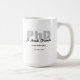 Uma grande caneca de graduação em doutorado que inclui o nome do formando, o campo de estudo e a data de formatura. A caneca inclui o nome em uma fonte de script de escrita manual e uma design preta e cinza. Basta adicionar as informações do formando, adicionar esta caneca ao seu carrinho e parabéns neste marco importante! Nome Formando Keepsasaau PhD Café Mug Holidayday Design | ©Melissa Patton - Designer