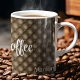 "Mas, Primeiro Café" cita em uma escritura branca moderna e o nome em um padrão marrom tufado decora esta caneca de bebida de 11oz. Altere facilmente o texto e o nome para torná-lo seu usando o Modelo fornecido. Também disponível em 15oz e outros estilos de caneca. Consulte "Sobre este produto" ao lado para obter mais informações.