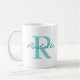 Tendy classic mug que apresenta um grande monograma inicial e um nome de script em ambos os lados no teal. Alterar nome e iniciais usando o Modelo fornecido. Consulte "Sobre este produto" ao lado para obter informações adicionais.