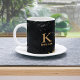 Caneca De Café Nome monograma preto dourado elegante