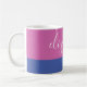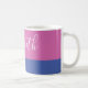 Esta caneca moderna e colorida apresenta seu nome em um roteiro manuscrito, e um design moderno de blocos de cores em rosa púrpura e azul.