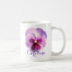 Uma foto de perto de uma flor pansy púrpura bonito e leve com um nome personalizado em script curvy.