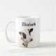 A caneca branca e na moda apresenta fotografia de vaca fazenda sobre fundo branco. Personalize e mude o nome para o seu. esta caneca engraçada será um presente personalizado perfeito.