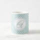 Caneca de café/chá personalizada, com padrão de polka-pontos de pasta azul/hortelã macia, com nome e inicial personalizados.