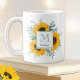 Caneca De Café Nome Personalizado do Monograma de Girassol