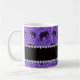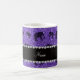 Ideias bonitas de presentes de elefante. Os elefantes roxos modernos e modernos brilham (FAUX NOT REAL GLITTER) como padrão de silhueta e os diamantes negros (não diamantes reais) com corações e faixas de pontos personalizadas com seus presentes de nome, presentes de monograma ou suas iniciais. Ideias de presentes brilhantes para aniversários e amantes de elefantes. Se você pressionar o botão personalizar, poderá alterar a cor e o tipo de fonte.