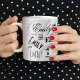 Uma caneca de tipografia de nome personalizado do nome Emily em uma variedade de estilos de tipo que sobrepõe a inicial em segundo plano. Cores simples de preto, branco e cinza contrastantes. O nome diz tudo. Ninguém pode tomar seu café por acaso.