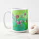 O nome personalizável no verão mostra o Coffee Mug verde. Feliz caneca de verão com flores silvestres de Watercolor e borboletas em um fundo verde vibrante com anéis de anéis como um prado de verão. O nome está em uma letra feminina e magenta. Um presente pessoal e pensativo para alguém especial. Esta caneca te dará boas vibrações e um sorriso no seu rosto. É verde vibrante e colorido. Quase como a brisa de verão está tocando seu rosto enquanto a luz do sol, borboletas e anéis Bokeh estão brincando. Com o seu nome, ninguém vai levar a sua caneca no escritório ou em casa. Disponível em diferentes modelos e tamanhos.