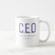 Uma caneca CEO com seu nome, o nome da sua empresa e sua data de estabelecimento. A design tem um esquema de cor roxa e preta. Simplesmente adicione sua informação, adicione esta caneca ao seu carrinho, e beba seu café como o chefe que você é.