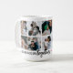 Crie sua própria caneca de café de colagem de fotos de primeira Dia de as mães especial. Apresentando 10 imagens quadradas no estilo instantâneo com o texto 'Nosso Primeiro Dia de as mães Juntos', a palavra em conjunto está em um roteiro moderno, dois pequenos corações cor-de-rosa bonitos que podem ser alterados para qualquer cor, uma mensagem doce que você pode manter ou mudar e nome/s. Todo texto pode ser personalizado em tamanho, fonte e cor.