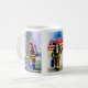 Uma caneca de café com ai gerou trabalho de arte representando diferentes bombeiros.
