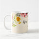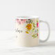 Nova avó Est. 2021', caneca decorativa de café na fronteira floral. Faz uma ideia de presente de anúncio de bebê excelente para a nova avó em 2021.