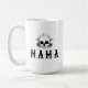 Esta caneca de cerâmica apresenta um crânio gótico com florais pretos e uma letra de estilo Halloween com a palavra "mama". Esta caneca faz o presente perfeito para sua nova mãe favorita ou para seu Dia de as mães, um aniversário etc.