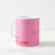 Elevem sua vida com essas canecas de Nova Orleans modernas, apresentando uma tipografia vermelha e ousada em fundo rosa. A palavra "Nova Orleans" é dividida estilmente em duas linhas em letras minúsculas decorativas, com texto personalizável acima para nomes, títulos de eventos ou temas de festas. Uma saqueta perfeita ou lembrança para amantes de Nova Orleans — minimalista, elegante e atraente.