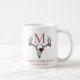Este país, Xmas, monograma, apresenta ilustrações desenhadas à mão de um crânio de rena e rosas de ambos os lados da caneca. Personalize com seu monograma, cartões de natal e seu nome familiar.