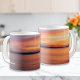Uma bela foto do pôr do sol por Destei apresentando tons laranja e roxos sobre um lago calmo. Esta caneca inclui espaço para personalizar com um nome, fazer-a como um presente pacífico e ponderado para quem ama a natureza, momentos lentos ou luz quente à noite.
