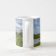 A linda caneca mostra fotografias cênicas de nuvens flutuando sobre o icônico Castelo Carew, Pembrokeshire, Wales.