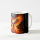 Uma fênix magnífica emerge de uma cama de brasas brilhantes, suas asas em chamas com tons de vermelho, ouro e laranja. As chamas dançam em torno de sua forma majestosa, simbolizando renovação, resiliência, e o eterno ciclo de vida. Com olhos piercing cheio de sabedoria, a ave mítica voa contra um céu escurecido, incorporando o poder transformador do fogo e o triunfo do renascimento.
