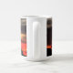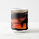 O fim da trilha em silhueta na caneca de café do pôr do sol