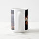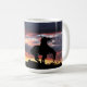 O fim da trilha em silhueta na caneca de café do pôr do sol
