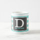 Dia dos pais feliz! Melhor caneca de café moderna do pai nunca. Com as listras azuis e brancas do ovo do pisco de peito vermelho e um monograma personalizado. Adicione 2 fotos!