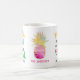 Todo professor vai gostar dessa caneca feliz! Apresenta um humorístico ditado "Seja um abacaxi" em texto colorido, e em frente à alça, um abacaxi brilhante e falso nome de professor. A imagem é impressa em ambos os lados da caneca. Faz um presente de apreciação de professor de excelente! Design ©2019 Rosalind Moore, Designs de Cherry Lane.