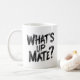 Traga um pouco de charme de Aussie para o seu cuppa diário com esta caneca divertida e amigável. Apresentando a saudação clássica australiana "What's Up Mate?", é a maneira perfeita de começar conversas (e manhãs) com um sorriso.